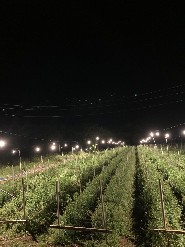 夜は菊の花に電気を照らして、一日中成長させる電照菊というものを